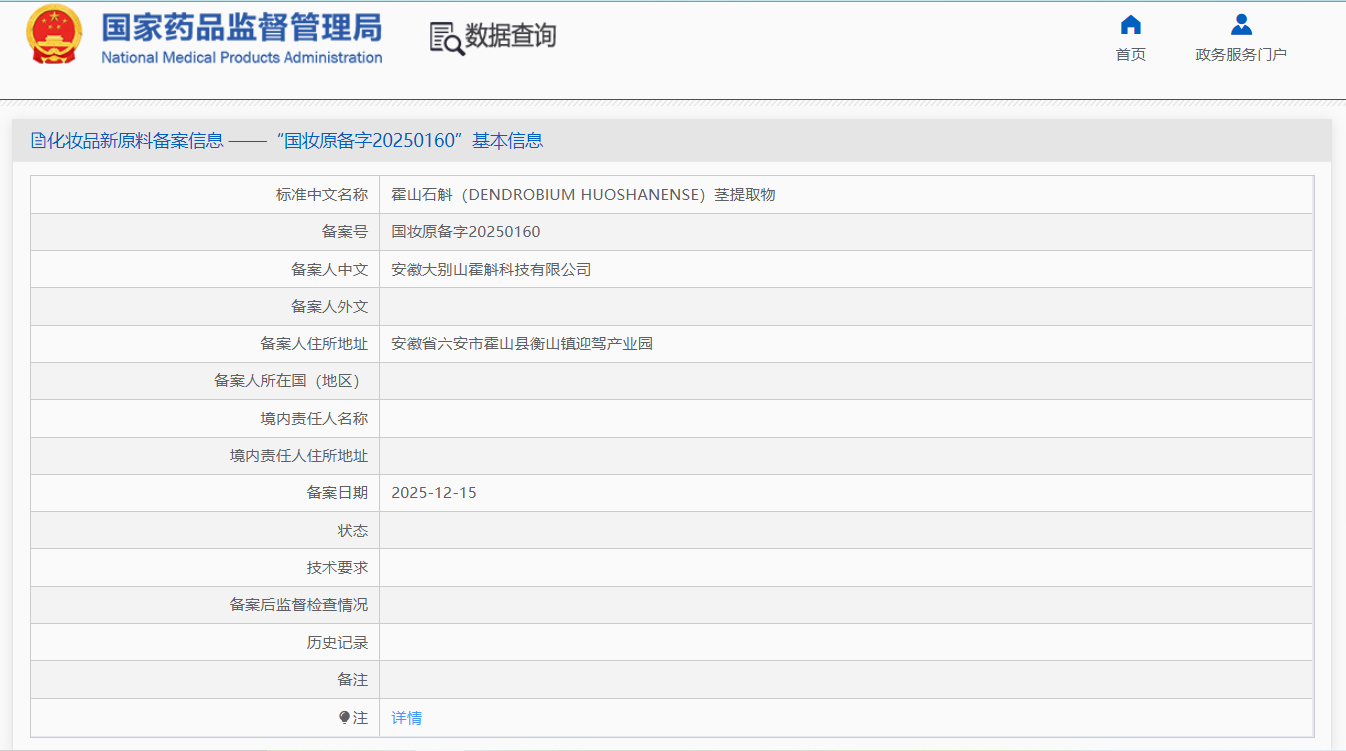 【重大突破】首个霍山石斛化妆品新原料备案通过 霍斛科技主导研发
